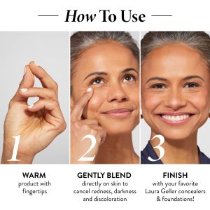The creamy formula grips to skin. ensuring even stubborn discoloration stays covered and concealed. Vitamin E and Squalane give a plumping dose of hydration. while Vitamin C and Sunflower Seed Oil work to energize and de-puff. Follow with setting powder or your favorite Laura Geller baked foundation!