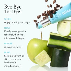 This multi-action cooling eye gel — with a steel rollerball massaging applicator — hydrates and awakens. while depuffing. brightening and tightening to help smooth and firm the look of tired eyes.