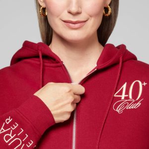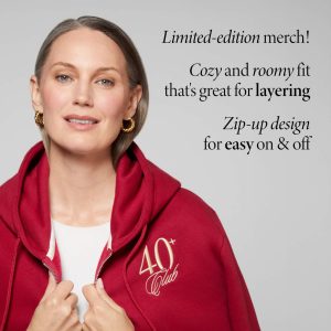 We know how it goes…first you’re too hot. then you’re too cold! A zip-up sweatshirt is always great to have on hand for staying comfy and cozy through changes in the weather. or your own internal temperature! It’s adorned with our 40+ Club logo to show off your love of our Geller-gorgeous makeup for mature skin!